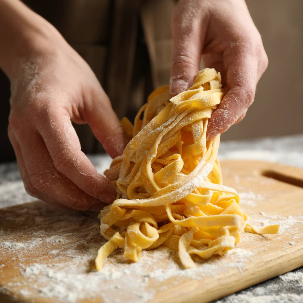 Продукт, изготовленный из муки твердых или мягких сортов пшеницы.